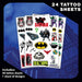 Introducing abeec Batman Transfer Tattoos. Perfect For Both Boys And Girls, These Temporary Tattoos Are An Excellent Addition To Birthday Parties, Superhero Gatherings, Or Simply For Everyday Play. The Party Pack Includes 24 x Sheets Of 20 Batman Themed Kids Temporary Tattoo, Providing A Variety Of Exciting Designs And Options.These Children's Tattoos Are The Perfect Party Bag Filler For Your Next Batman-themed Birthday Party, Making Each Kid Birthday Bag A Treasure Trove Of Fun. Each Sheet Is Made Up Of Various Tattoo Designs, Promising A Delightful Surprise For Every Child.