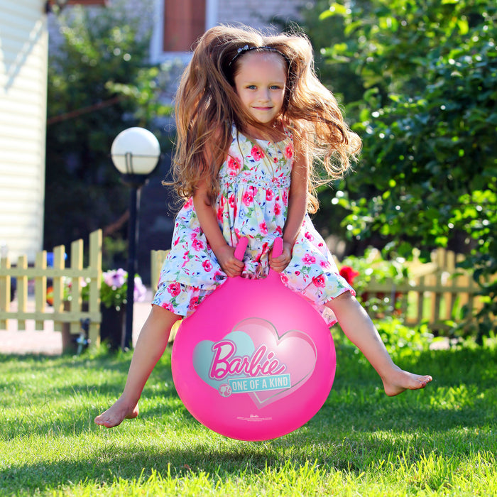 Get ready to hop, bounce, and jump into fun with our Barbie Space Hopper! This classic toy has been entertaining kids (and adults) for generations, and it's easy to see why. With its bright pink colour and cute design, it's sure to bring a smile to your face and a bounce to your step. With easy to grab handles, it makes it great for little ones to grab a hold of and grip easily. Get ready to hop, bounce, and jump into fun with our Barbie Space Hopper!
