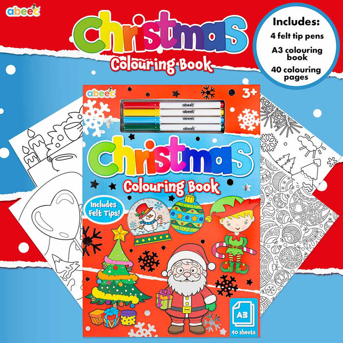 abeec® | Christmas Colouring Book - A3 Including Felt Tips