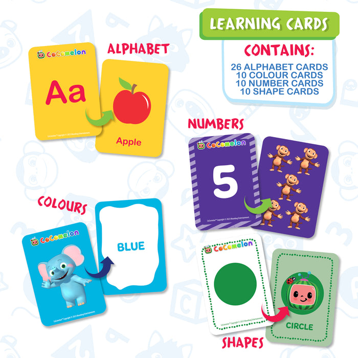 Cocomelon learning cards are perfect for toddlers and children developing skills. The flash cards make great educational flash cards. Learn the alphabet, colours, numbers, and shapes. Learning cards are a key part of your child's development. As well as helping with a number of skills, they're also finished with your favourite CoComelon characters.