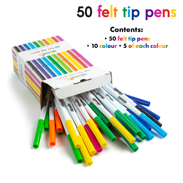Introducing our premium set of 50 felt tip pens, the ultimate companion for all your artistic endeavours. These pens are meticulously crafted to provide you with a seamless and vibrant drawing experience like no other. Each pen in this collection is equipped with a durable felt tip that glides effortlessly across the page, delivering bold and precise lines. With a wide range of colours at your fingertips, you'll be able to bring your imagination to life.