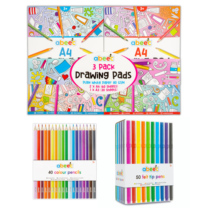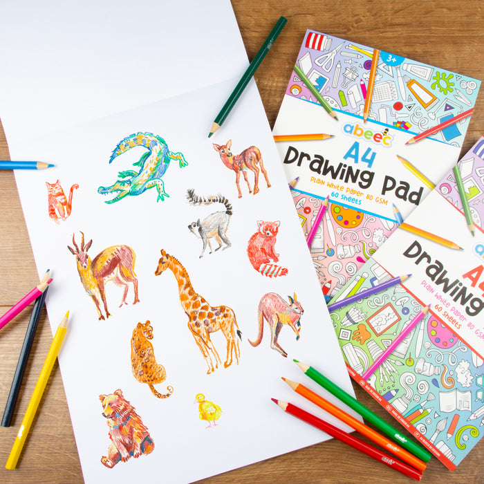 With three colouring books in a pack, these Children's Drawing Pads are perfect for little artists. The Pack contains 2 x A4 drawing pad and 1 x A3 sketchbooks, one for bigger projects and one perfect for keepings kids occupied on long journeys. This awesome set of white drawing paper, is useful for all the family. Perfect for a kids easel and with A total of 150 sheets over the 3 junior artist sketch pads, the creativity will never stop. These pads can be used for colouring, sketching, painting, scrapbooking and even finger painting.