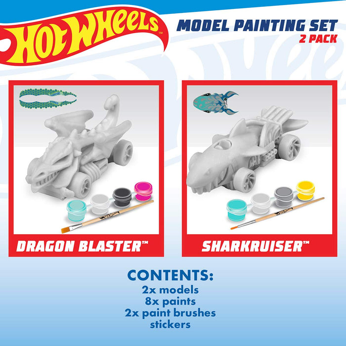 Unleash Creativity With The Hot Wheels Model Painting Set – 2 Pack! This Exciting Kit Features Two Fan-favourite Cars, The Dragon Blaster And Sharkruiser, Ready For A Custom Paint Job. With 8 Vivid Paints, Including Metallic, And Two Easy-to-use Paintbrushes, Kids Can Make Each Car Their Own. Plus, The Set Comes With Fun Stickers For Added Customization, Letting Young Hot Wheels Fans Personalize Each Vehicle With Flames, Stripes, And Unique Designs. Safe For Ages 3+, This Kit Encourages Fine Motor Skills And Imaginative Play, Making It A Perfect Gift For Budding Artists And Car Lovers Alike. Just Open The Box And Get Started!