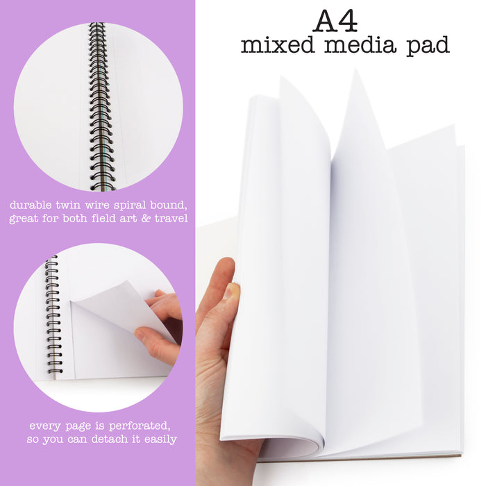 Introducing The abeec A4 Mixed Media Paper A4, Specifically Designed For Adult Artists. The 60 Page Artists Sketch Pad Is The Perfect Companion For Your Creative Journey. At A4 Size, It's An Ideal Canvas For Your Ideas, Whether You're Sketching With Pencils, Painting With Watercolours, Or Experimenting With Mixed Media. The Art Sketchbook Contains Quality Art Paper: 20 x 100 gsm Drawing Paper, 20 x 145 gsm Mixed Media Paper And, 20 x 28 gsm Tracing Paper Ensuring That Your Artwork Stays Vibrant And Does Not Fade Away. The Sketching Pad Is Also Ring Bound, To Create Ease Of Removal Without Damaging Your Masterpiece.