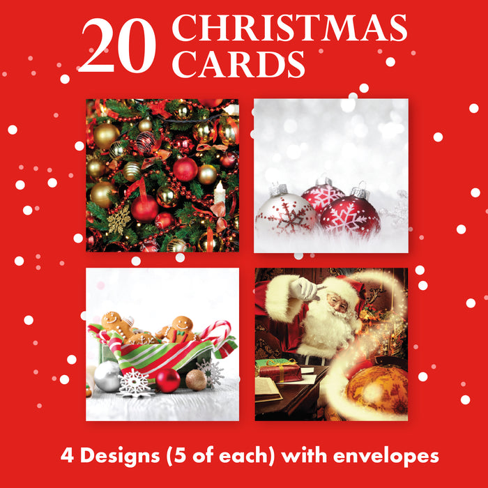 This set of cards includes 20 x cards in total with 5 x cards in 4 different themes: Santa, Gingerbread men, and 2 variations of Christmas decorations. All cards are sealed shut and packed in a cardboard box to keep cards in perfect condition until you’re ready to pick one.