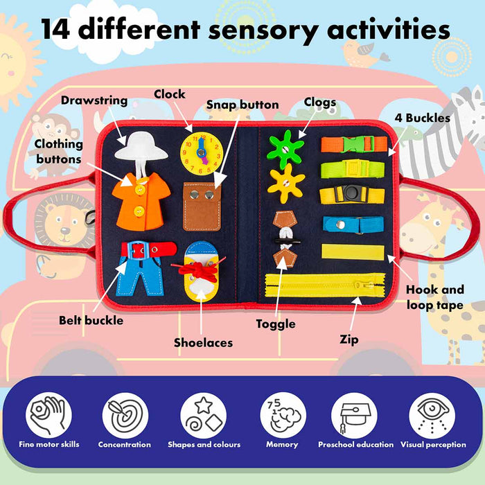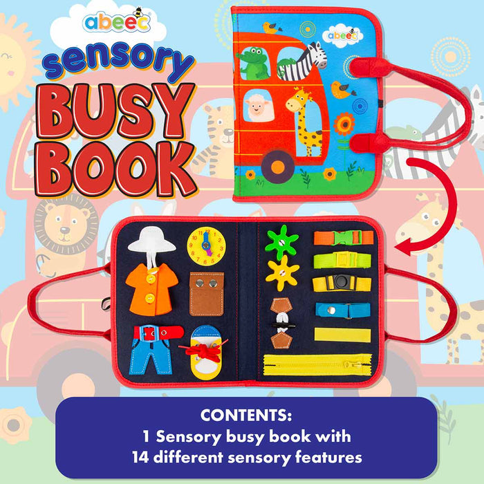 Introducing The abeec Sensory Busy Book, Perfect For Curious Kids. Our Product Is Not Just A Baby Book, It's A Busy Book Full Of Fun And Engaging Activities That Will Keep Your Little One Entertained For Hours. Ideal For Soft Play At Home Or On The Go, This Book Is Perfect For Developing Fine Motor Skills. Your Child Will Have A Blast Buckling, Buttoning, And Even Learning To Tie A Shoe Lace! But The Fun Doesn't Stop There, This Busy Book Also Doubles As A Sensory Toy, Providing Tactile Fun And Exploration For Your Toddler. With Touch And Feel Activities This Book Is Sure To Stimulate Your Child's Senses And Ignite Their Imagination. It's Perfect For Children As Young As 18 Months Old. We Understand That As Parents, You're Always On The Lookout For Toys That Are Not Just Fun, But Also Educational. That's Why We've Included A Clock For Telling The Time In Our Book. The Busy Book Is Also An Excellent Gift Option. Whether It's For A 1st Birthday, Christmas, Or Just Because, This Book Is Sure To Be A Hit.
