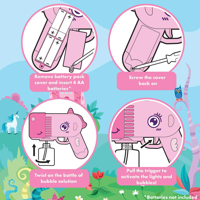 This Bubble Gun Machine Is Easy To Use, Unscrew The Lid Of The Bubble Mixture, Place The Tube Of The Unicorn Toy Gun Into The Liquid And Screw In