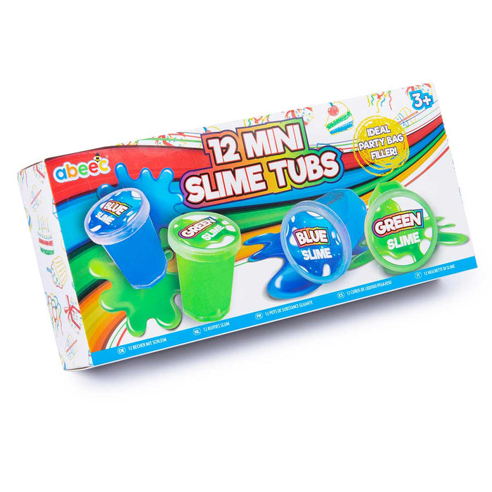 Kids will love these mini slime tubs! This pack of 12 bright coloured gooey slimes make perfect party bag fillers and provide hours of fun for slime loving children. Each slime comes in an air tight tub to make them super easy to store and prevent them from drying out. These super sticky slimes are brilliant for keeping your kids occupied at any occasion.