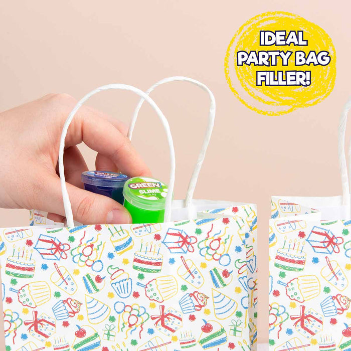 Why not pair the slime party bag fillers with other kids party favours such as bubbles, bendy pencils, squishy toys & mini notebooks!