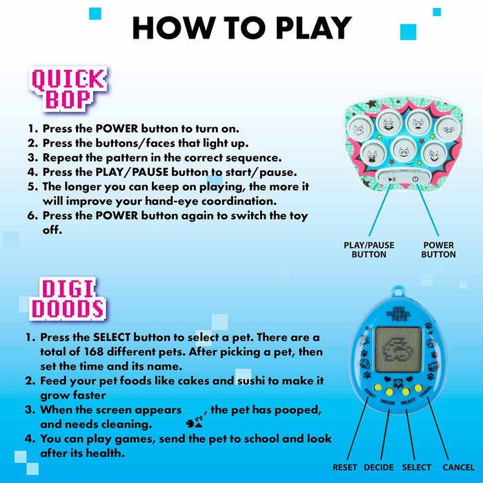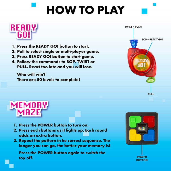 Get ready for non-stop fun with this 4-in-1 Fidget Fun Game! Packed with Memory Maze, Digi Doods, Quick Bob, and Ready Go, this interactive toy features lights and sounds for an engaging experience. Perfect for boosting memory, creativity, and reflexes in kids aged 5+