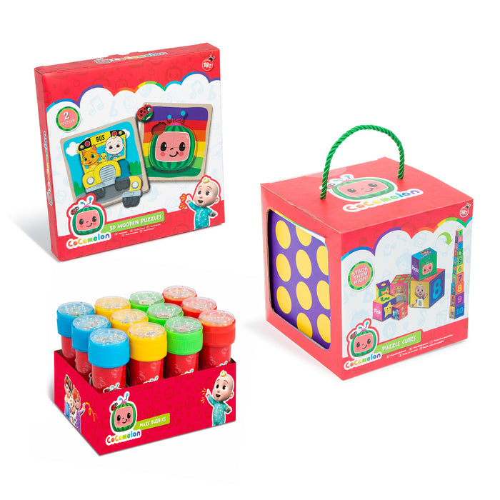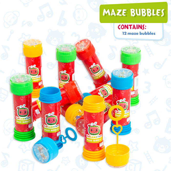 The CoComelon Maze Bubbles 12 Pack is a delightful and entertaining set that combines the joy of bubbles with engaging maze challenges. Each pack includes 12 bottles of bubble solution, featuring colourful and cute CoComelon characters on the packaging. The twist lies in the maze-screw top attached to each bottle, adding an exciting twist to the classic bubble-blowing experience. Perfect for outdoor play and birthday parties as party favours!