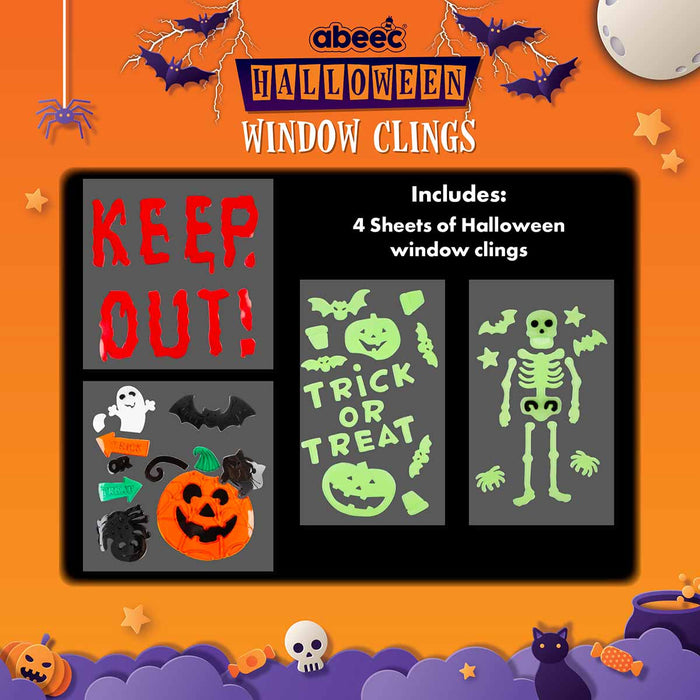 Transform your home into a Halloween haven with our Spooky Halloween Window Clings! Featuring glow-in-the-dark designs, these clings include everything from eerie "Keep Out" signs to playful pumpkins, ghosts, spiders, bats, stars, skeletons, and a spooky cat. Easy to apply and reposition, they're perfect for creating a festive and frightful atmosphere. Made from safe, non-toxic materials, these clings are suitable for all ages and can be reused year after year. Whether you're decorating for a Halloween party or just love the season, these window clings add a touch of magic and fun to any space.