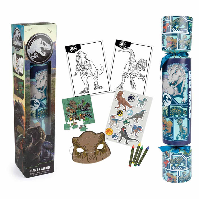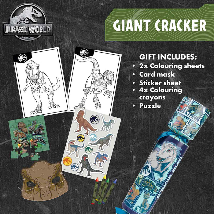 Unleash The Magic Of Christmas With The 48cm Giant Jurassic World Christmas Cracker. The Festive Cracker Is The Ultimate Stocking Filler For Young Dinosaur Fans Aged 3 And Up. Packed With Dinosaur Stickers, Colouring Sheets, Crayons, A Fun Puzzle, And A Mask, It Promises Endless Fun And Creativity. Perfect For Adding A Touch Of Enchantment To Your Christmas Celebrations, This Giant Cracker Will Light Up Your Christmas Morning And Bring Joy To Any Jurassic World Fan. Make Your Holiday Season Extra Special With This Magical Treat.