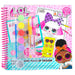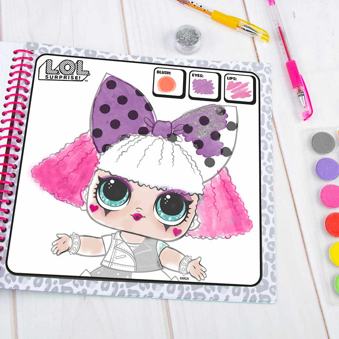 L.O.L Surprise! Fashion & Make up design art kit. Get cool and creative with this L.O.L crafting activity. Fill the pages with colourful designs, stickers, and glitter goodness! This LOL make up design pad is perfect for keeping kids occupied for hours! Become an L.O.L fashion designer. Style all your favourite L.O.L Dolls in the book with colours, glitter, and stickers. The L.O.L Surprise art set makes a perfect gift for girls.
