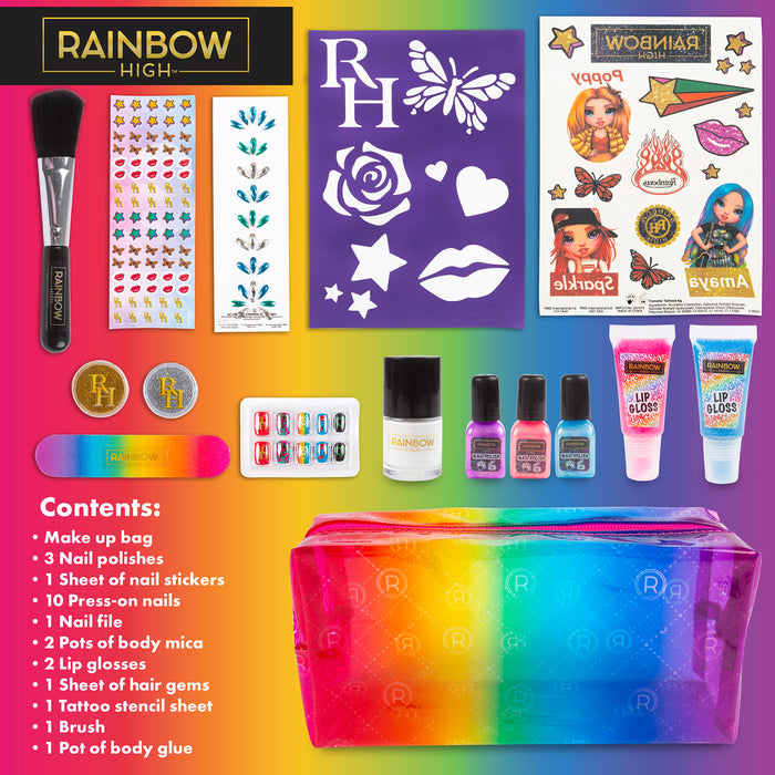Introducing The Rainbow High Lip Gloss Set, The Perfect Makeup Set For Children Who Love To Play Dress-up And Experiment With Makeup. This Beauty Set Is Designed To Provide Hours Of Fun And Creativity For Young Girls. The Set Includes A Variety Of High-quality Makeup Products That Are Safe And Non-toxic For Children And Features A Stunning Range Of Nail Varnish Colours That Will Add A Touch Of Sparkle And Glamour To Any Little Girl's Nails.